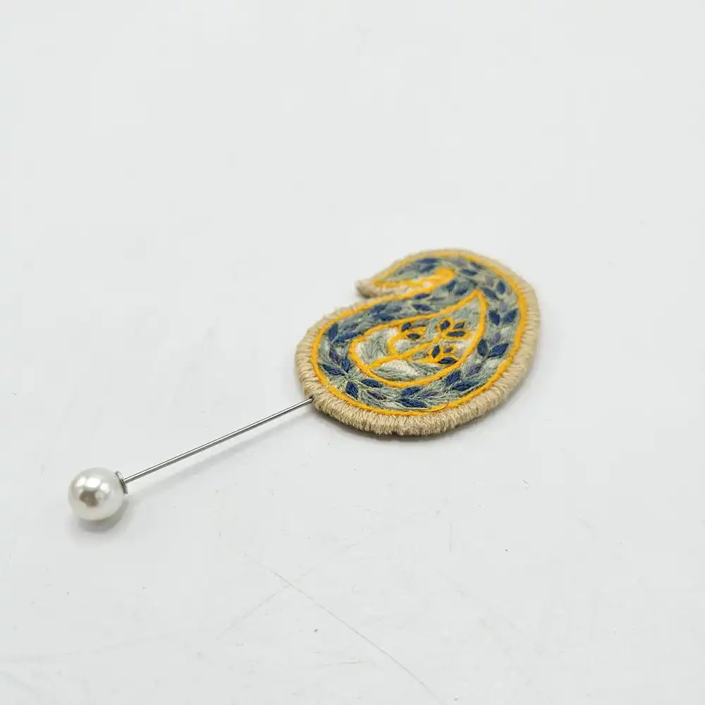 سنجاقسینه پتهدوزی طرح بته جقه یا همان گلسینه دستدوز پتهدوزی، تلفیقی از هنر سنتی و طراحی مدرن است که میتواند هر لباس سادهای را به مرکز توجه تبدیل کند. این سنجاق زیبا با تکنیک اصیل پتهدوزی توسط زنان روستای شفیعآباد شهداد در کرمان دوخته شده و با نخ پشمی رنگرزیشده طبیعی حس لطافت و اصالت را منتقل میکند.