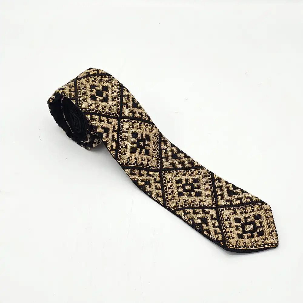 طرح سوزندوزی ذهنیدوزی و به اصطلاح با تارشماری صورت میگیرد و تمام پارچه از کوک و بخیه های رنگین پوشیده شدهاست.این کراوات را هم میتوانید با لباس و تیپ اسپرت و هم رسمی بپوشید. طول این کراوات 62 و عرض آن در پهن ترین قسمت 7 سانت است.